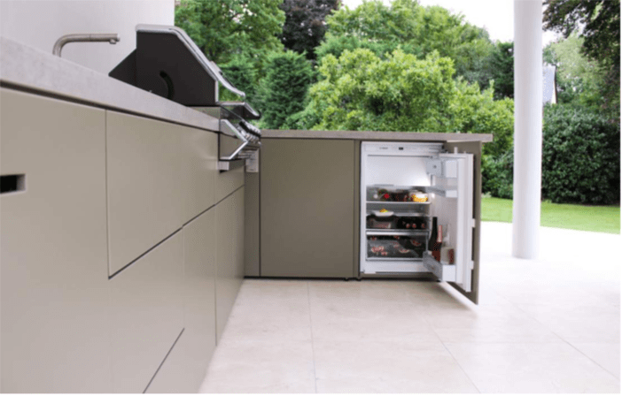 We supply a huge range of built-in units to integrate into your individual Cubic outdoor kitchen Cabinets. For grilling and cooking. Also, induction hobs are another option to dine family and friends outside. With cooking together, you will also need some chilled beverages – so here compliments a built-in fridge and freezer. The dimensions of your kitchen appliances are decisive for the remaining dimensions of the kitchen. Leave enough space on both sides of the grill to place plates and barbecue cutlery. If you have not yet chosen a particular appliance, we will be happy to suggest a suitable selection. Just give us some information about what is important to you for the respective type of appliance.