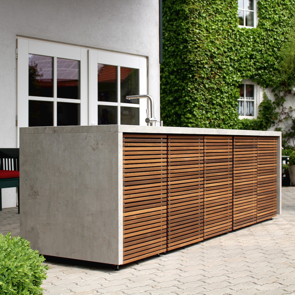 Summer, sun, outdoor kitchen! Together with family and friends, the open – air cooking area will soon become your new favorite place. The production of the weatherproof CUBIC OUTDOOR KITCHEN CABINETS takes place in the heart of Germany in our manufactory. An individuality is written in a capital letters here. Thanks to the production by hand, we are able to respond to wishes that are not standard. At the same time, all materials are optimally matched for outdoor use. During production, we use a modular design of the Cubic Outdoor Kitchen Cabinets which is additionally simplified the planning process. There are no limits to your ideas. Together we get the best out of it!