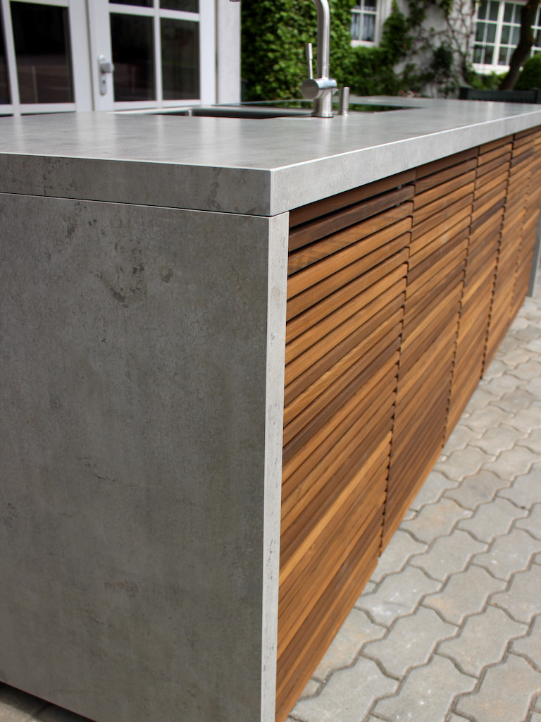 Choosing the right worktop is an important step towards your perfect Cubic outdoor kitchen Cabinet. Basically you have the choice between a ceramic or natural stone worktop. The extremely low weight, our ceramic tops are particularly suitable for rooftop terraces with natural stone, the kitchen can be perfectly adapted to the floor covering or a great natural look can be achieved. The thickness of the worktop you can play between light and solid optics.